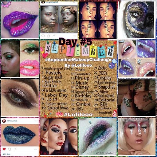 Some sparkling highlights from Day 5 – GLITTER of the #Lolilooo #SeptemberMakeupChallenge !!! Please click the pics to see who these artist are, and show them some love ❤️ I’ve been so happy to be playing with makeup again!! Keep up your bangin’ artistry! 💋 love you guys for all your support and sweet comments! 💓