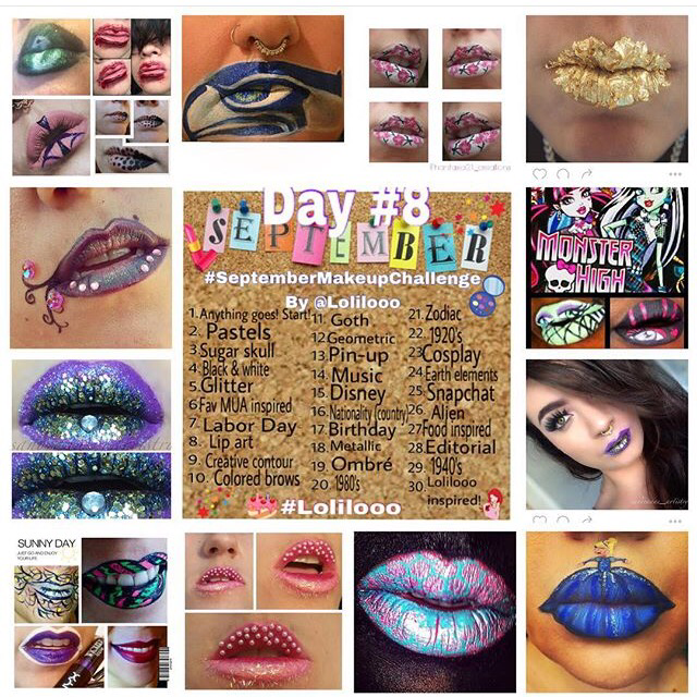 Day 8 – LIP ART of the #Lolilooo #SeptemberMakeupChallenge !!! I am so blown away with all your creativity and thinking outside the box!!! I had to feature everyone!!! I wake up every morning sooo looking forward to your new entries and ideas! You guys are truly making my bday month a gem! 💎🎂